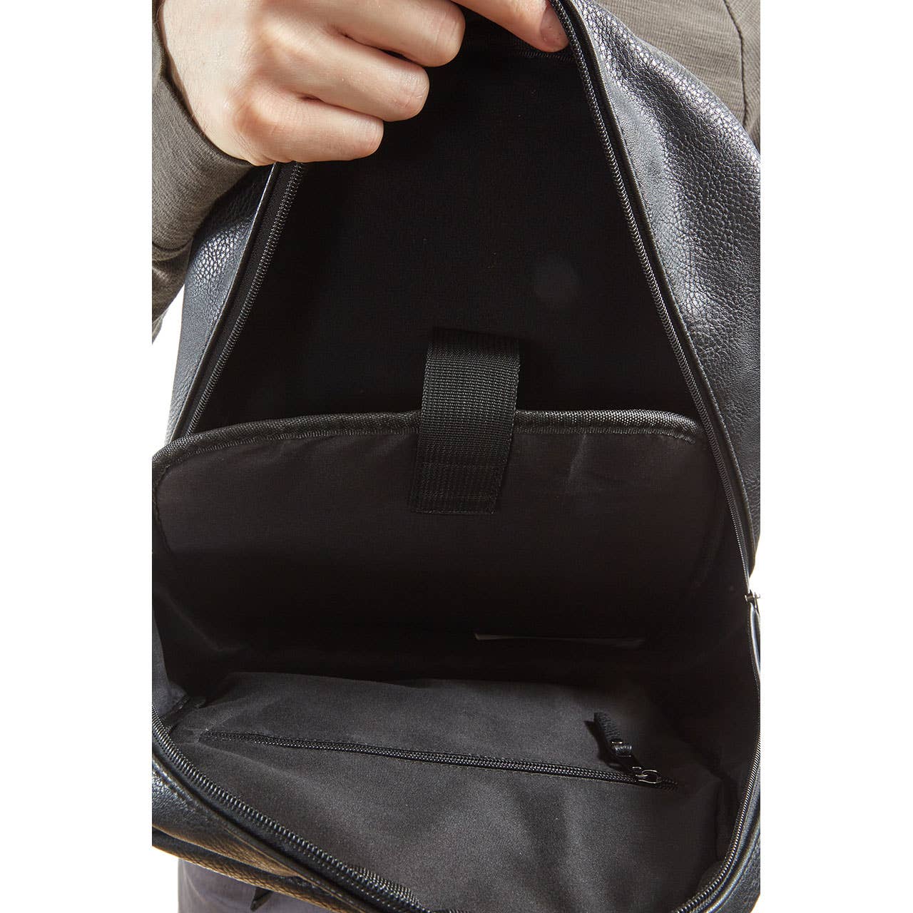 Meet your new everyday essential — a modern, refined backpack crafted from premium pebbled vegan leather. Designed for function and sophistication, it features an ultra-soft 15" laptop sleeve with an easy stretch-fit design to keep your tech protected and secure.
