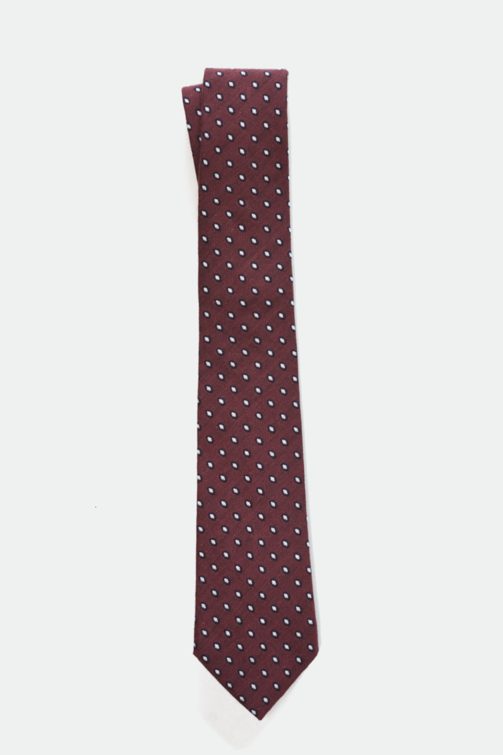 Classic with a refined twist. This wine red tie features a timeless polka dot pattern in a rich cotton-silk blend that offers a soft, brushed handfeel with subtle structure. The 3-inch width delivers a traditional, confident silhouette — perfect for tailored moments that call for understated personality.