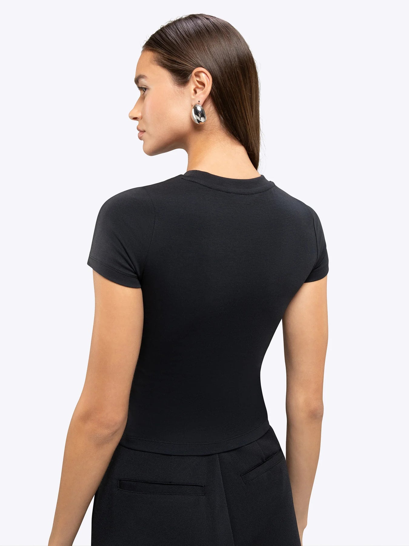 Cool and confident. For the days you need to be effortlessly polished. A slim fit tee that perfectly pairs with your favorite trouser or straight denim. Style it up with jewelry and a strappy heel or keep it casual with a chunky sneaker.