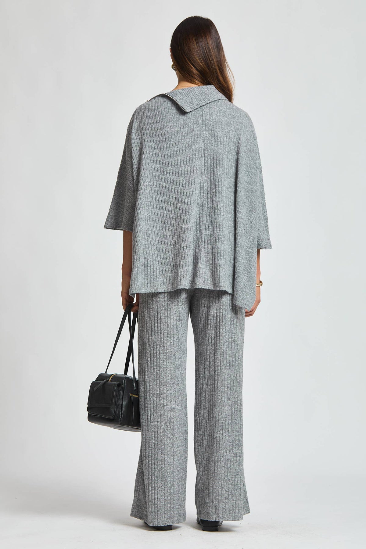 Brushed Ribbed 2-Piece Poncho & Pant Set