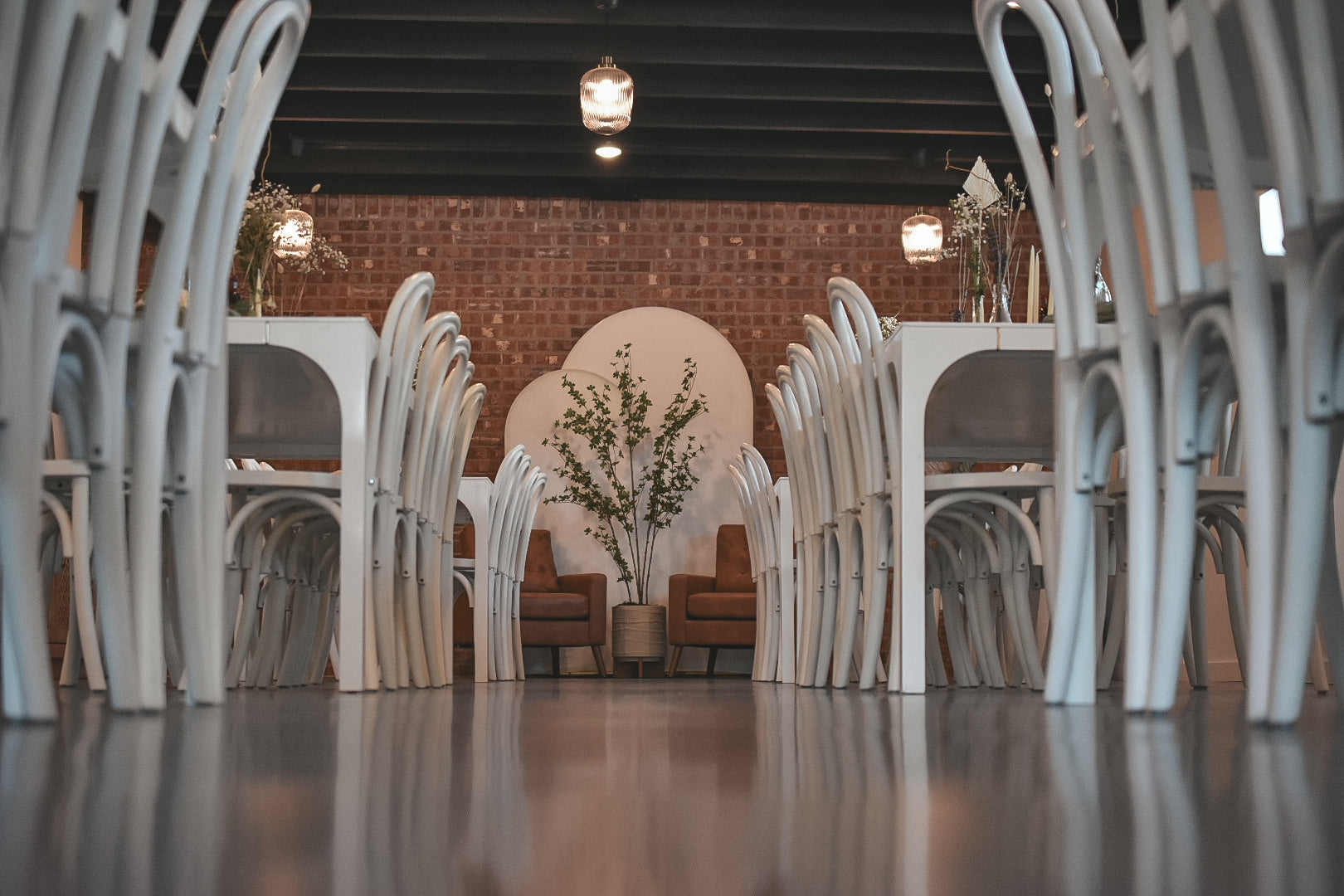 Our solid wood tables and modern chairs are included with every rental — no upgrades needed. Their clean, versatile design provides the perfect foundation for any event style, from minimal to refined. Thoughtfully chosen and beautifully maintained, they’re ready for whatever you envision.